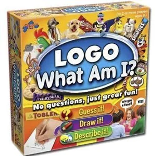Logo: What Am I? lets players dive into the fun world of brands and products without asking questions. Instead, you will describe, draw, and guess the items shown on the cards. Your goal is to be the first player or team to reach the center of the board.